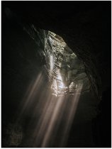 WallClassics - Poster Brillant - Rayons de Lumière dans la Grotte - 60x80 cm Photo sur Papier Poster avec Finition Brillante