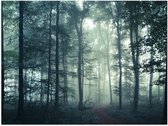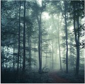 WallClassics - Poster Glossy - Brouillard dans une Forêt Sombre - 80x80 cm Photo sur Papier Poster avec Finition Brillante