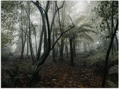 WallClassics - Poster Glossy – Foggy Forest - 80x60 cm Photo sur Papier Poster avec Finition Brillante