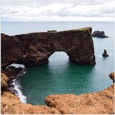 WallClassics - Affiche Brillante – Rocher avec Ouverture en Mer par Jour Nuageux - 80x80 cm Photo sur Papier Affiche avec Finition Brillante