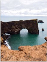 WallClassics - Poster Glossy - Rock s'ouvrant sur la mer par temps nuageux - 80x120 cm Photo sur Papier Poster avec Finition Brillante
