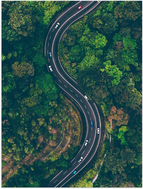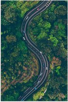 WallClassics - Poster Glossy - Route sinueuse à travers la forêt - 30x40 cm Photo sur Papier Poster avec Finition Brillante