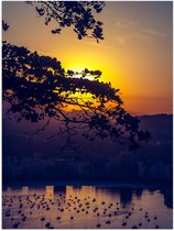 WallClassics - Poster Glossy - Sun Shining Through the Forêts - 30x40 cm Photo sur Papier Poster avec Finition Brillante