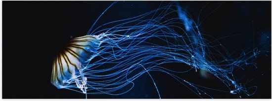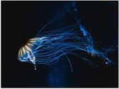 WallClassics - Poster (Matte) - Jaune avec Méduse Bleue Sous Water - 90x30 cm Photo sur Papier Poster à l'Aspect Mat