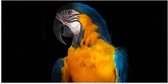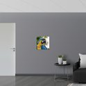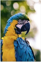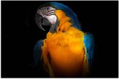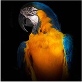 WallClassics - Poster (Matte) - Jaune avec Perroquet Ara Bleu - 50x50 cm Photo sur Papier Poster avec un aspect Mat