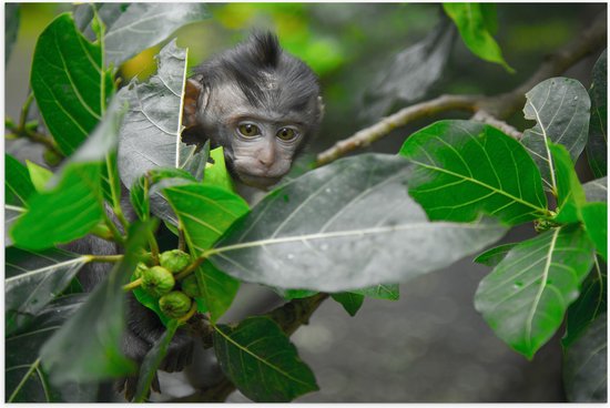 WallClassics - Poster (Mat) - Klein singe parmi les feuilles - 75x50 cm Photo sur papier poster aspect mat