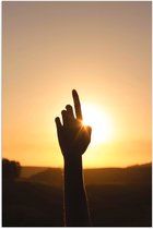 WallClassics - Poster (Matte) - La main avant le coucher du soleil - 50x100 cm Photo sur Papier Poster avec un aspect Mat