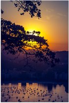 WallClassics - Poster (Matte) - Soleil derrière les Branches - 50x75 cm Photo sur Papier Poster avec un aspect Mat