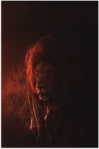 WallClassics - Poster (Matte) - Lion dans la nuit - 50x100 cm Photo sur Papier Poster d'aspect Mat