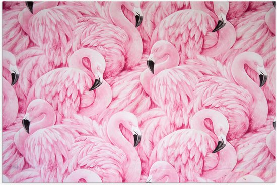 WallClassics - Poster (Matte) - Flamants Roses Dessinés - 90x60 cm Photo sur Papier Poster avec un aspect Mat