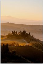 WallClassics - Poster (Matte) - Paysage Misty Hill avec Soleil Levant - 60x40 cm Photo sur Papier Poster avec un Aspect Mat