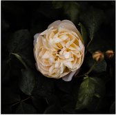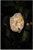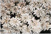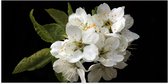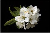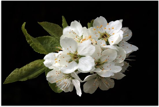 WallClassics - Poster (Matte) - Petites Fleurs Witte avec Feuilles Vertes sur Fond Noir - 75x50 cm Photo sur Papier Poster à l'Aspect Mat