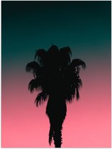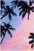 WallClassics - Poster (Matte) - Silhouette d'un Palmier avec un Ciel Rose - 100x150 cm Photo sur Papier Poster avec un Aspect Mat