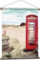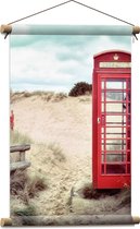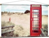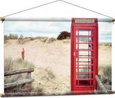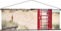 WallClassics - Poster Textile - Cabine Téléphonique Rouge dans les Dunes - 120x40 cm Photo sur Textile