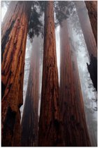 WallClassics - Poster (mat) - Très grands Arbres dans une forêt brumeuse - 75 x 100 cm Photo sur papier poster avec un aspect mat