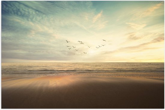 WallClassics - Poster (Matte) - Vogels volant au-dessus de la mer et de la plage - 60x40 cm Photo sur Papier Poster avec un aspect Mat