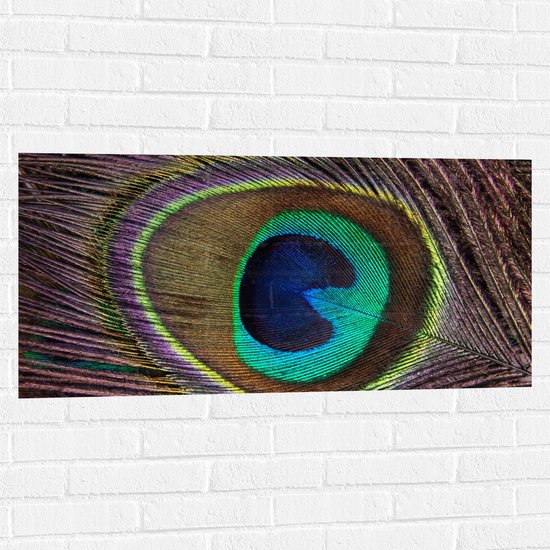 WallClassics - Sticker Muursticker - Oeil de Plume de Paon - 100x50 cm Photo sur Sticker Muursticker