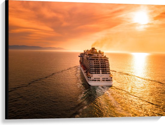 WallClassics - Toile - Bateau de croisière sur Water au doux coucher de soleil - 100x75 cm Photo sur toile (Décoration murale sur toile)