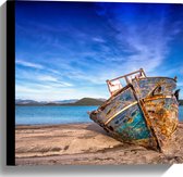 WallClassics - Toile - Bateau de skipper bleu sur la plage avec soleil couchant - 40x40 cm Photo sur toile (Décoration murale sur toile)