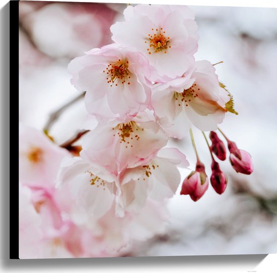 WallClassics - Toile - Brindille Fleur Rose Clair - 60x60 cm Tableau sur Toile (Décoration murale sur Toile)