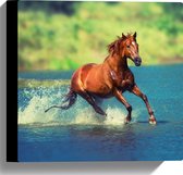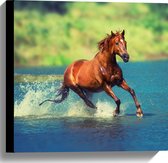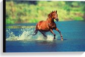 WallClassics - Toile - Cheval marron courant dans l' Water - 40x30 cm Photo sur toile (Décoration murale sur toile)