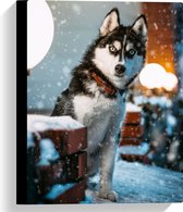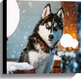 WallClassics - Toile - Husky en colère dans la neige - 40x40 cm Tableau sur toile (Décoration murale sur toile)