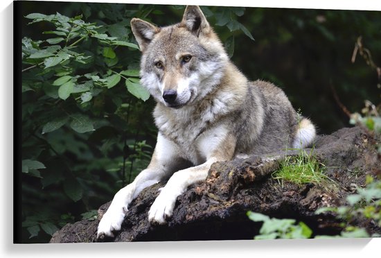 WallClassics - Toile - Loup au repos dans la nature - 90x60 cm Photo sur toile (Décoration murale sur toile)