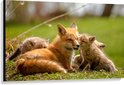 WallClassics - Toile - Mère renarde allongée dans l'herbe avec Enfants - 120x80 cm - Photo sur toile (Décoration murale )