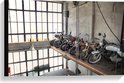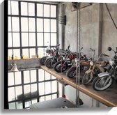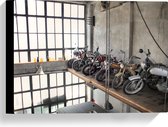 WallClassics - Toile - Motos garées dans un hangar - Tableau 60x40 cm sur toile (Décoration murale sur toile)