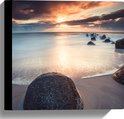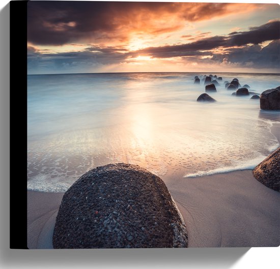 WallClassics - Toile - Nuages sombres avec soleil sur la plage - 30x30 cm Tableau sur toile (Décoration murale sur toile)