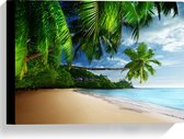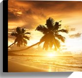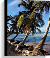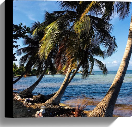 WallClassics - Toile - Palmiers inclinés sur la plage - 30x30 cm Photo sur toile (Décoration murale sur toile)
