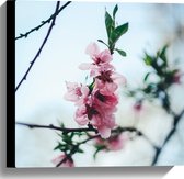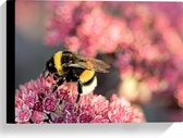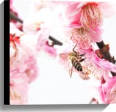 WallClassics - Toile - Pollinisation d' une Bloem rose par une abeille - Photo sur toile 40x40 cm (Décoration murale )
