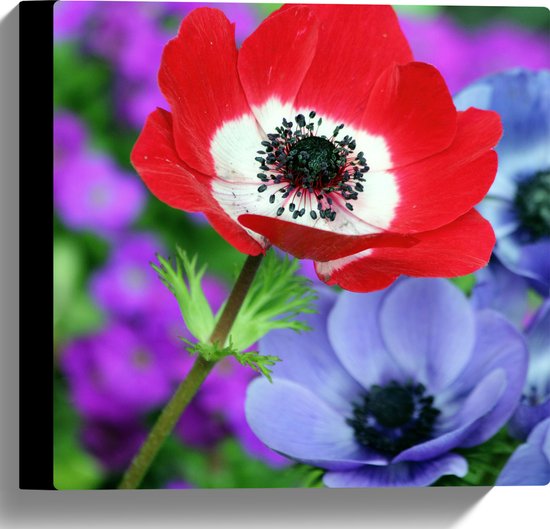 WallClassics - Toile - Rouge avec Violette Wit entre Violettes Violettes - 30x30 cm Photo sur Toile Peinture (Décoration murale sur Toile)