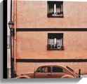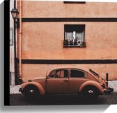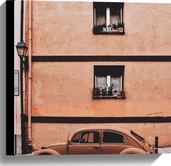 WallClassics - Toile - Voiture Coccinelle couleur rouille garée devant un immeuble - Photo sur toile 40x40 cm (Décoration murale )