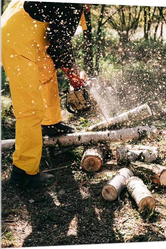 WallClassics - Verre Acrylique - Bûcheron en Action - 80x120 cm Photo sur Verre Acrylique (avec système de suspension)