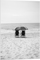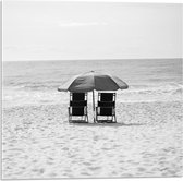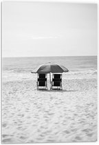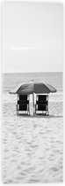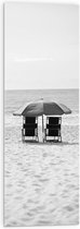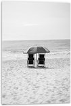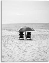 WallClassics - Verre Acrylique - Chaises sur la Plage avec Parasol en noir et blanc - 50x75 cm Photo sur Verre Acrylique (Décoration murale sur Acrylique)