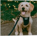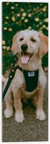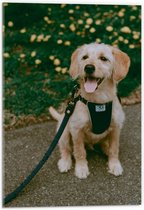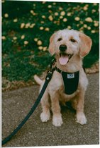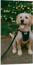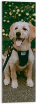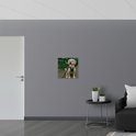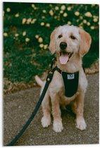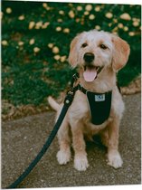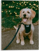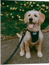 WallClassics - Verre Acrylique - Chien assis avec langue et harnais avec collier - 50x50 cm Photo sur verre acrylique (Décoration murale sur acrylique)