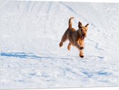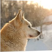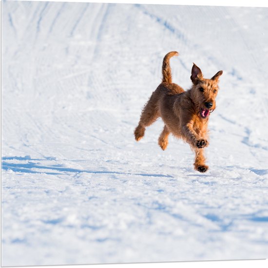WallClassics - Verre Acrylique - Chien Marron Courant dans la Neige - Photo 80x80 cm sur Verre Acrylique (Avec Système d'accrochage)