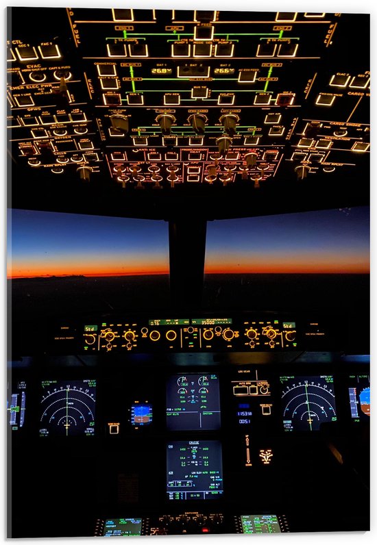 WallClassics - Verre acrylique - Cockpit avec coucher de soleil le soir - Photo 40x60 cm sur verre acrylique (Décoration murale sur acrylique)