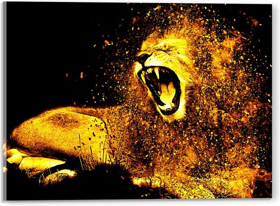 WallClassics - Verre Acrylique - Lion de Feu Grognant avec Lueur Jaune - Photo 40x30 cm sur Verre Acrylique (Avec Système d'accrochage)