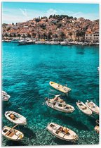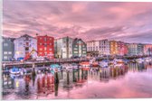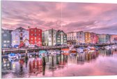WallClassics - Verre Acrylique - Maisons colorées sur le port avec bateaux - 120x40 cm Photo sur Verre Acrylique (Décoration murale sur Acrylique)