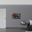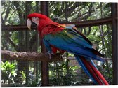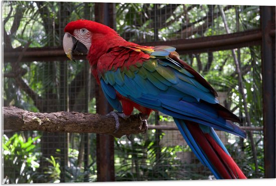 WallClassics - Verre Acrylique - Perroquet Coloré en Cage sur Branche - Photo 90x60 cm sur Verre Acrylique (Avec Système d'accrochage)
