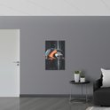 WallClassics - Verre acrylique - Perroquet Zwart et Oranje sur une branche en cage - Photo 60 x 90 cm sur verre acrylique (avec système de suspension)