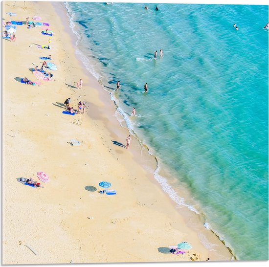 WallClassics - Verre acrylique - Plage touristique - Photo 50x50 cm sur verre acrylique (avec système de suspension)