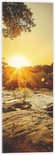 WallClassics - Verre Acrylique - Rayons de Soleil Lumineux sur Champ Vert - Photo 20x60 cm sur Verre Acrylique (Avec Système d'accrochage)