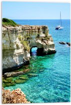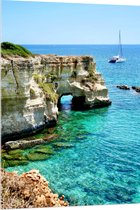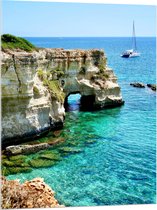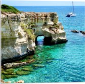WallClassics - Verre Acrylique - Roche Beige en Mer Bleu Clair - Photo 50x100 cm sur Verre Acrylique (Avec Système de Suspension)