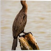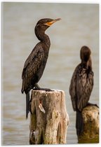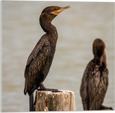 WallClassics - Verre Acrylique - Vogel sur Poteau en Bois dans la Mer - Cormoran - 50x75 cm Photo sur Verre Acrylique (avec système de suspension)