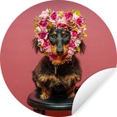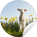 Wallpaper Circle - Agneau - Fleurs - Jonquilles - 120x120 cm - Wall Circle - Auto-Adhésif - Rond Papier Peint Autocollant XXL