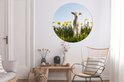Papier peint autocollant cercle - Agneau - Fleurs - Jonquilles - Salon - Chambre
