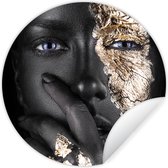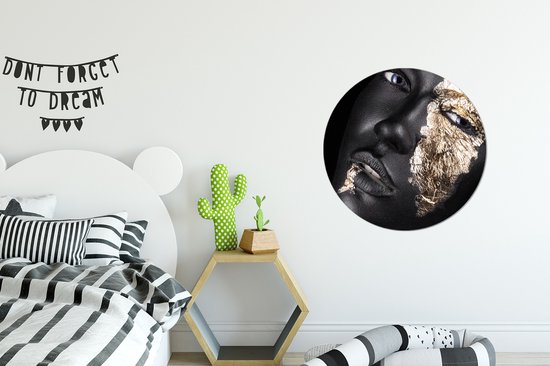 La peau de cette femme est teinte puis recouverte d'or. La femme se détache sur le fond noir. Les cercles de papier peint WallCircle sont la décoration murale autocollante idéale pour, par exemple, la chambre à coucher, la chambre de bébé ou la chambre de bébé. Ce sticker mural rond est autocollant et repositionnable. Vous pouvez facilement appliquer l'autocollant de papier peint sur le mur et le repositionner facilement lorsque vous souhaitez coller le cercle de papier peint ailleurs.